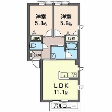2LDK(LDK11.1帖 洋室5.9帖 洋室5.8帖) |