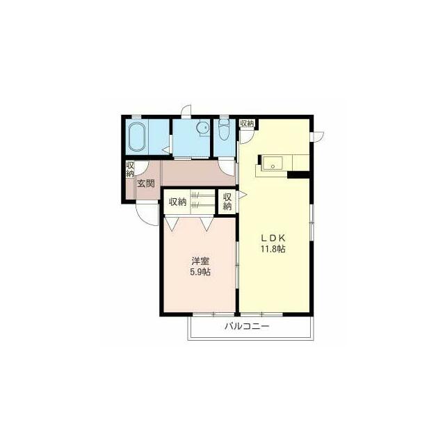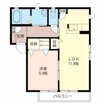1LDK(LDK11.8帖 洋室5.9帖) |